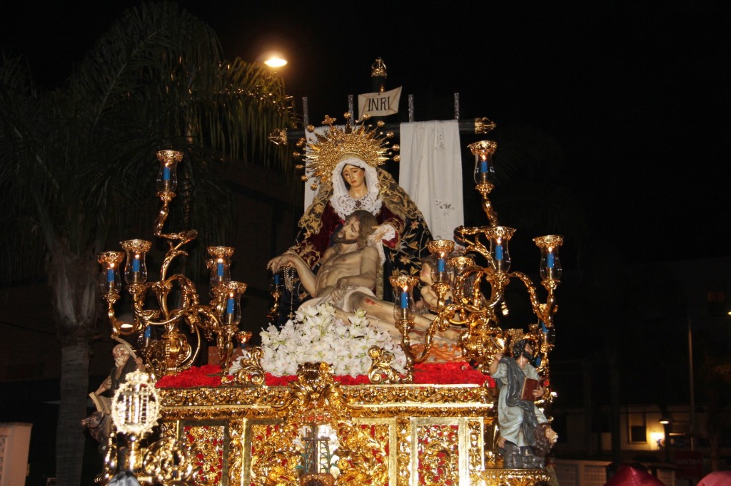 Una noche solemne donde destacada el nuevo trono del Cristo yacente, aun sin terminar, pero donde ya destaca el diseño que se ha hecho realidad tras el boceto del artista granadino, Álvaro Abril, aunque posteriormente ha sido rectificado para el paso adecuado por las calles sexitanas por el tallista, Manuel Oliva.